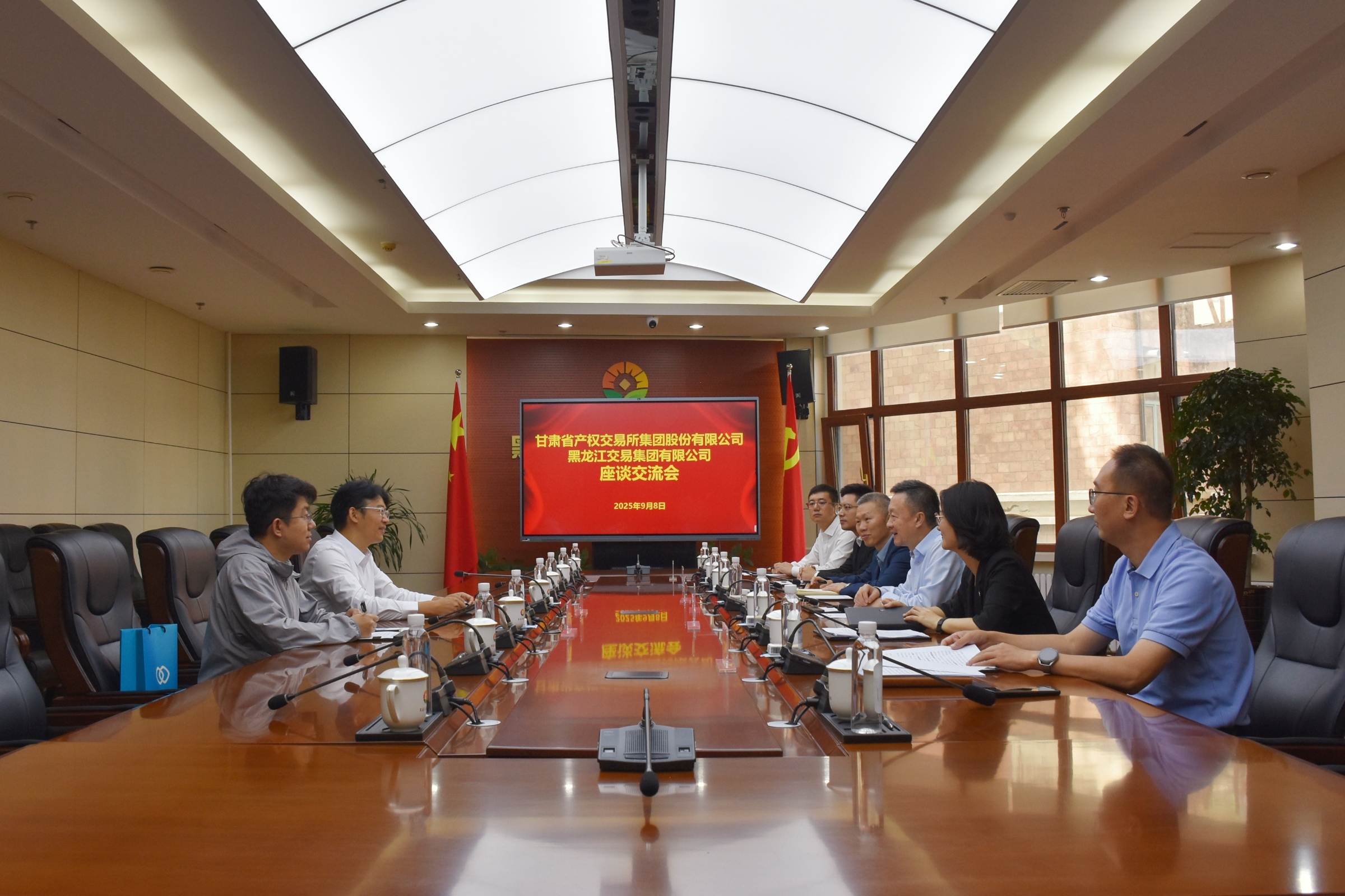 新聞中心 > 集團要聞9月8日,甘肅省產(chǎn)權(quán)交易所集團黨委副書記、總經(jīng)理趙永濤一行到黑龍江交易集團進行座談交流,黑龍江交易集團黨委書記、董事長夏明禹與來訪客人進行座談。黑龍江交易集團黨委副書記、副董事長、總經(jīng)理王志昕,副總經(jīng)理單勇,集團有關(guān)部門及權(quán)屬企業(yè)相關(guān)同志參加座談。雙方圍繞企業(yè)戰(zhàn)略布局、創(chuàng)新業(yè)務(wù)發(fā)展等重點工作,及新興業(yè)務(wù)領(lǐng)域創(chuàng)新實踐典型案例開展深入交流研討。